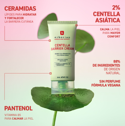 Por eso es fundamental integrar un tratamiento barrera como Centella Barrier Cream en la rutina. Enriquecida con activos expertos, refuerza y repara esta función protectora, para una piel más resistente, calmada y con una sensación de confort en el día a día, manteniendo un buen nivel de hidratación.