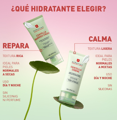 Centella Crème: textura más ligera, de absorción rápida. Hidrata intensamente, ayuda a reducir las rojeces y es adecuada para todo tipo de pieles, especialmente ideal para pieles normales a grasas.