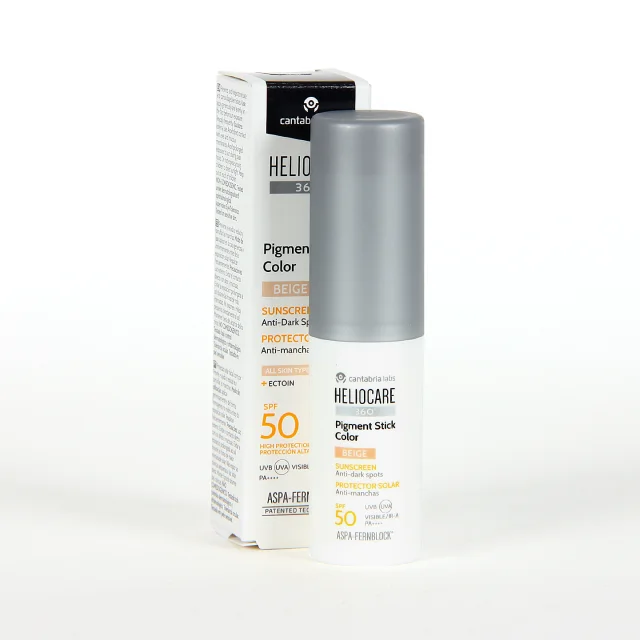 Innovador stick facial con color 3 en 1 que previene, reduce y camufla las manchas para unificar el tono de piel. Con filtros 100% minerales. Formulado para proteger especialmente de la radiación visible, importante causante de la aparición de manchas. Su exclusiva tecnología Aspa-Fernblock® contribuye a reparar el daño solar y optimizar la función de la vitamina D, mientras que la ectoína aporta acción antipolución y efecto iluminador. De aplicación fácil y cómoda, es ideal para usarlo tanto de base de maquillaje como para retoques localizados durante el día.