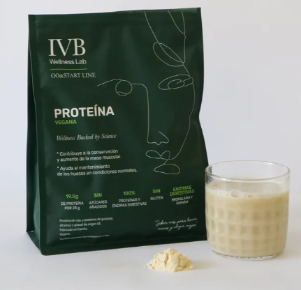 La proteína vegana IVB es un preparado alimenticio en polvo elaborado a partir de aislado de proteína de soja, guisante, altramuz y semillas de girasol.
